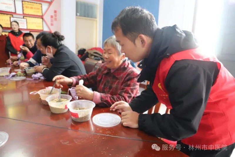 晋坡村以“中医药文化+健康养生”特色活动为300余名长者送上节日祝福:药师备好健脾祛湿、温中祛寒、清热解毒三种配方的香囊原料,结合秋冬季“燥邪伤肺、湿气残留”的中医养生理论进行讲解同时指导长者亲手制作,一位老人手持做好的香囊笑道:“这味道闻着真舒服,心里也觉得暖和”;市中医院八段锦表演队完整展示功法并邀请长者共同体验,耐心指导动作并科普道“常练能活络筋骨、舒缓身心”,八十岁的马大爷练完后笑着说:“这动作看着慢,做下来身上还真热乎”;医护人员现场为长者演唱《咱老百姓》,熟悉的旋律引得不少长者跟着轻声哼唱,温馨氛围萦绕全场。